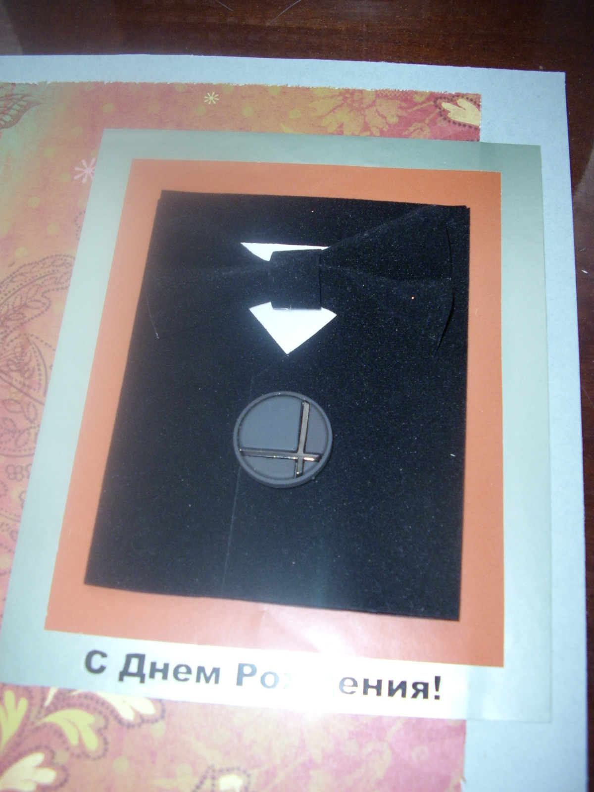 с днем рождения и кармашками для фото. дарители сказали, что всем понравилась пуговичка на пиджаке)) |