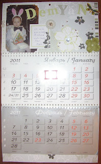 в роли кролика мой сын. основа - календарь одной косметической фирмы. фон из набора для скрапа. буквы - чипборд из того же альбома. белые уголки, кружок оттуда же, бумажный цветок с брадсом, стразы из набора. наклейка объемная с кнопкой готовая. в итоге, на работу ушло 20 минут. хорошо для себя делать, так приятно, можно лепить, что хочешь и куда хочешь. не думая особо, понравится ли конкретному человеку